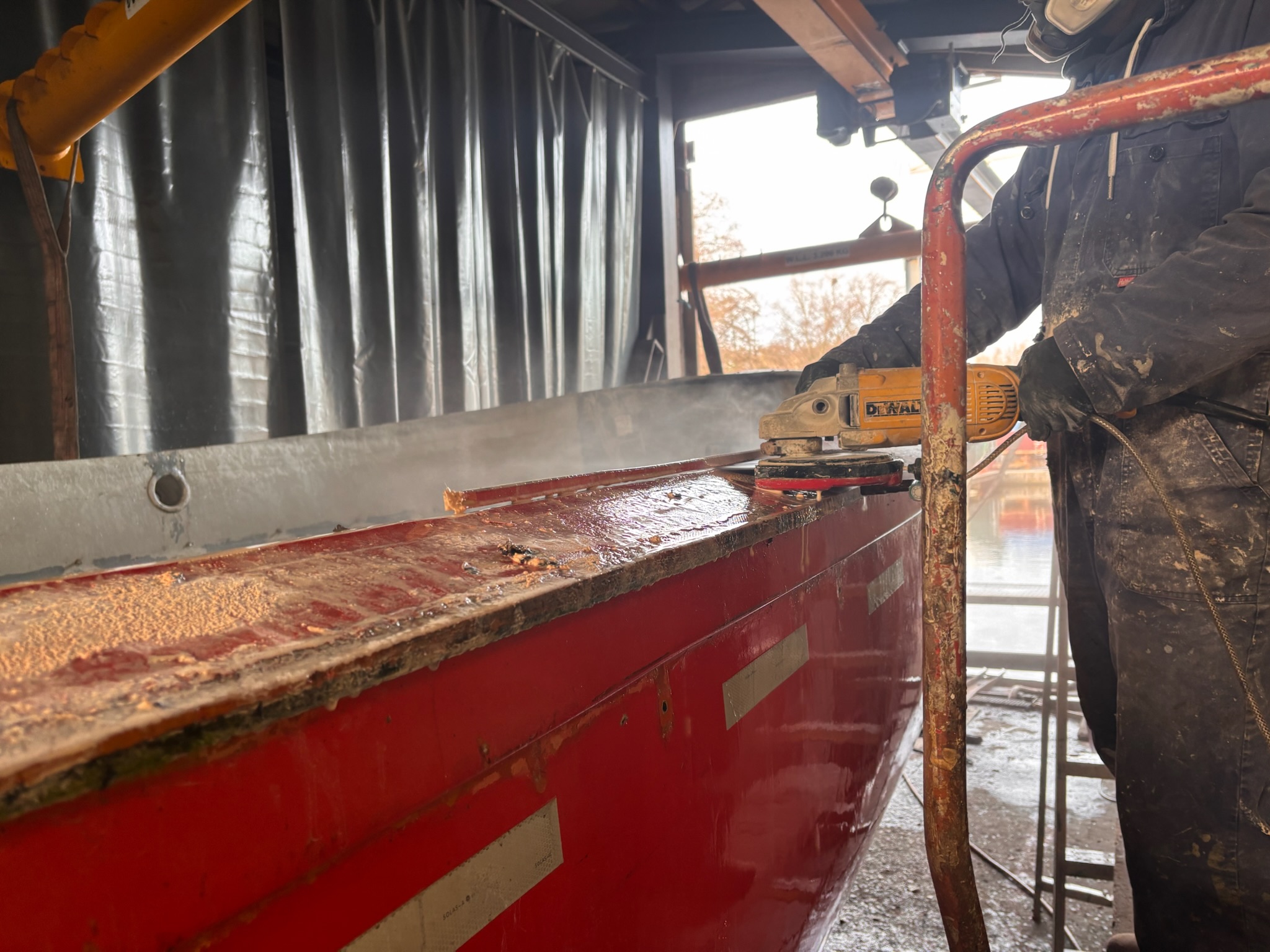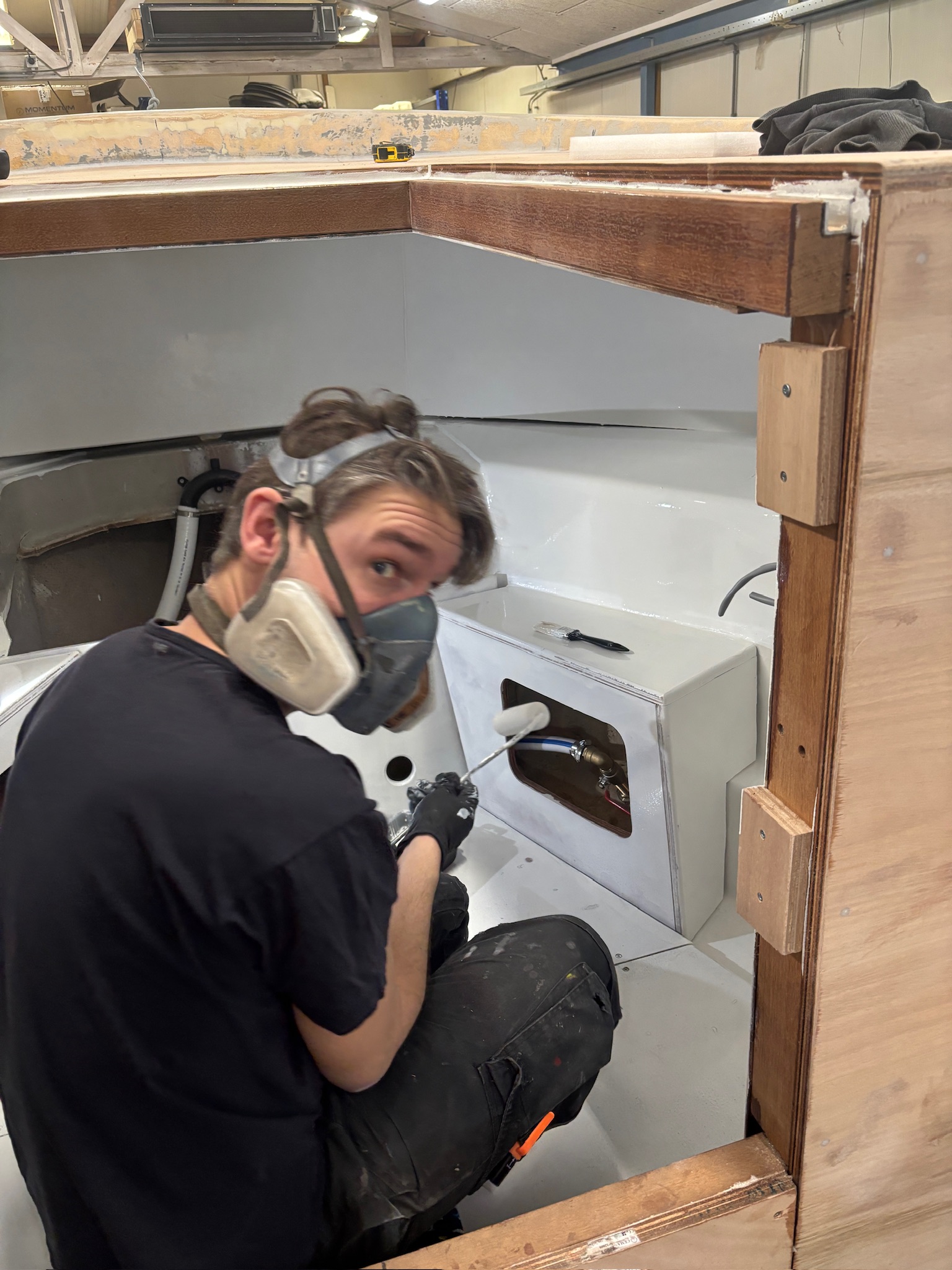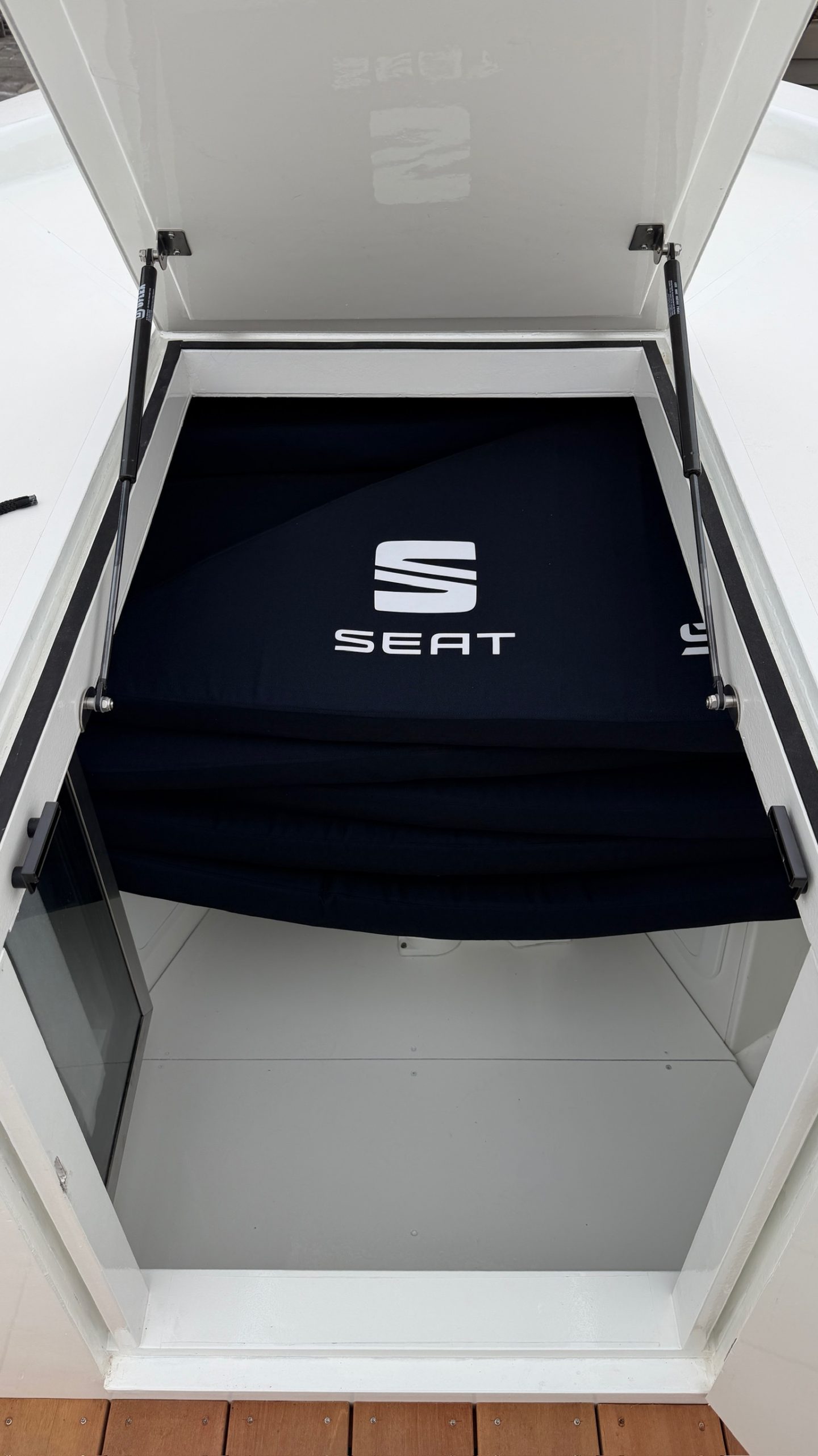 De basis van het project ligt in de herbestemming van het oorspronkelijke reddingssloepcasco. De rand is volledig geschuurd en opnieuw afgewerkt om een solide basis te creëren voor verdere opbouw. Het interieur is vanaf nul opgebouwd met een combinatie van hardhout en watervast gelamineerd multiplex. Alle constructieve delen zijn vervolgens gelamineerd met glasvezel en kunsthars. Deze aanpak resulteert in een stijve, onderhoudsarme en duurzame constructie. In het vooronder is een afgewerkte ruimte gerealiseerd met geïntegreerde verlichting, een koelkast en sanitaire voorzieningen. Door deze indeling ontstaat een functionele en comfortabele omgeving voor representatief gebruik.