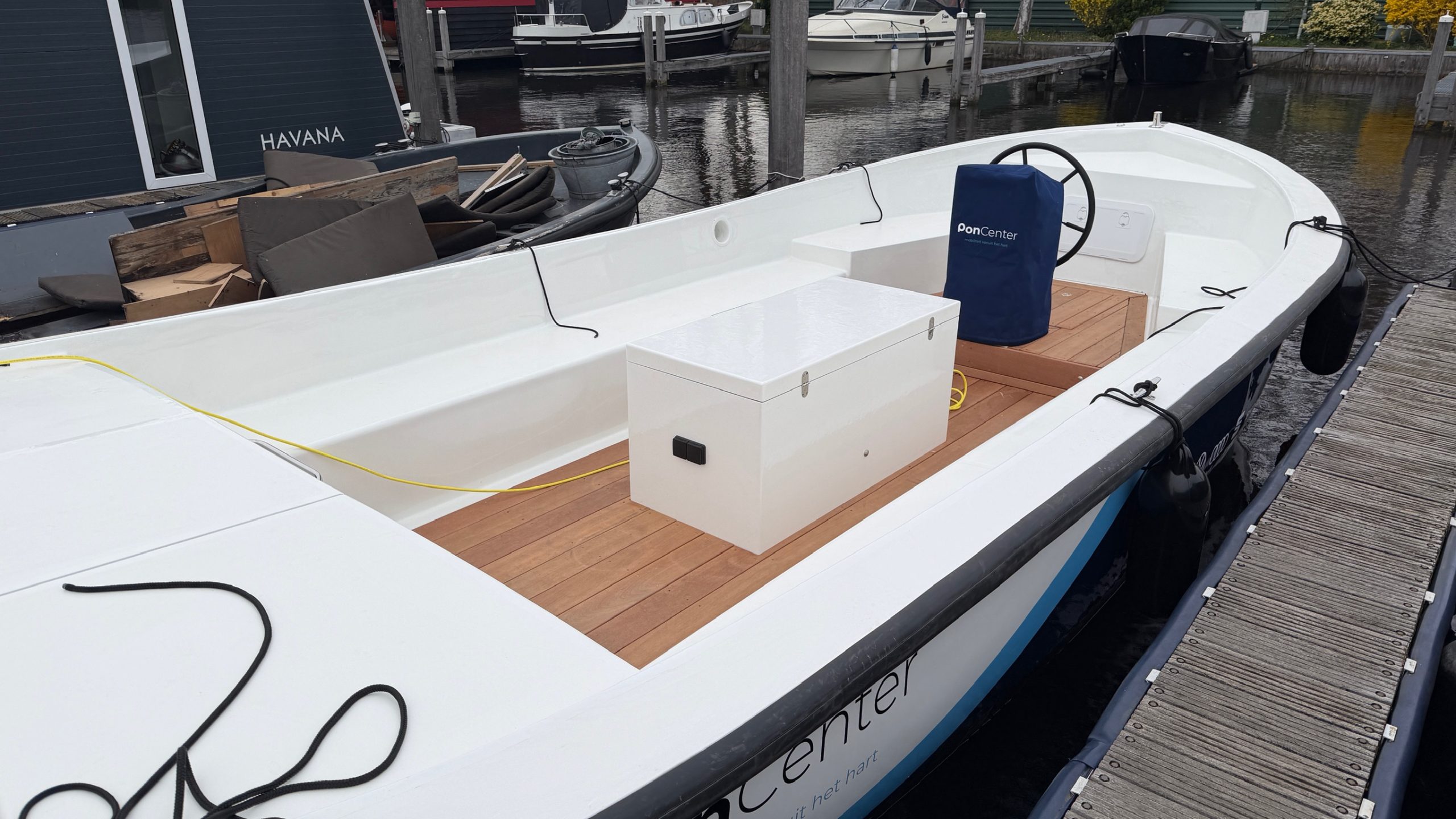 Het project Pon Center – Koopmans Welvaren II betreft de volledige transformatie van een bestaande Harding reddingssloep naar een elektrisch aangedreven representatiesloep. De opdracht is uitgevoerd voor Boatique, met als eindgebruiker PON Nederland. Het uitgangspunt was een leeg casco, waarbij zowel de technische installatie als het complete interieur opnieuw zijn opgebouwd. De sloep wordt ingezet voor klantcontact en representatieve doeleinden. Dit stelt specifieke eisen aan betrouwbaarheid, geluidsniveau en afwerkingsniveau. Binnen dit project is gekozen voor een volledig emissievrije voortstuwing, gecombineerd met een robuuste energievoorziening en een duurzame opbouw van het schip.